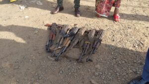 Il s’agit de 7 armes et 6 voleurs mains armées ainsi que plusieurs autres effets militaires récupérés.