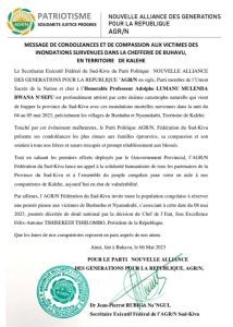 ” J’encourage notre population à rester soudée et solidaire pour apporter soutien et réconfort à nos familles en ce moment de dure épreuve. Cet appel est lancé à toute la communauté au niveau local, national et international. Notre parti AGR/N, cadres et membres, ensemble compatissons avec les familles endeuillées. Puisse le Bon Dieu être notre consolateur et paix aux âmes des disparus”, a-t-il conclu.