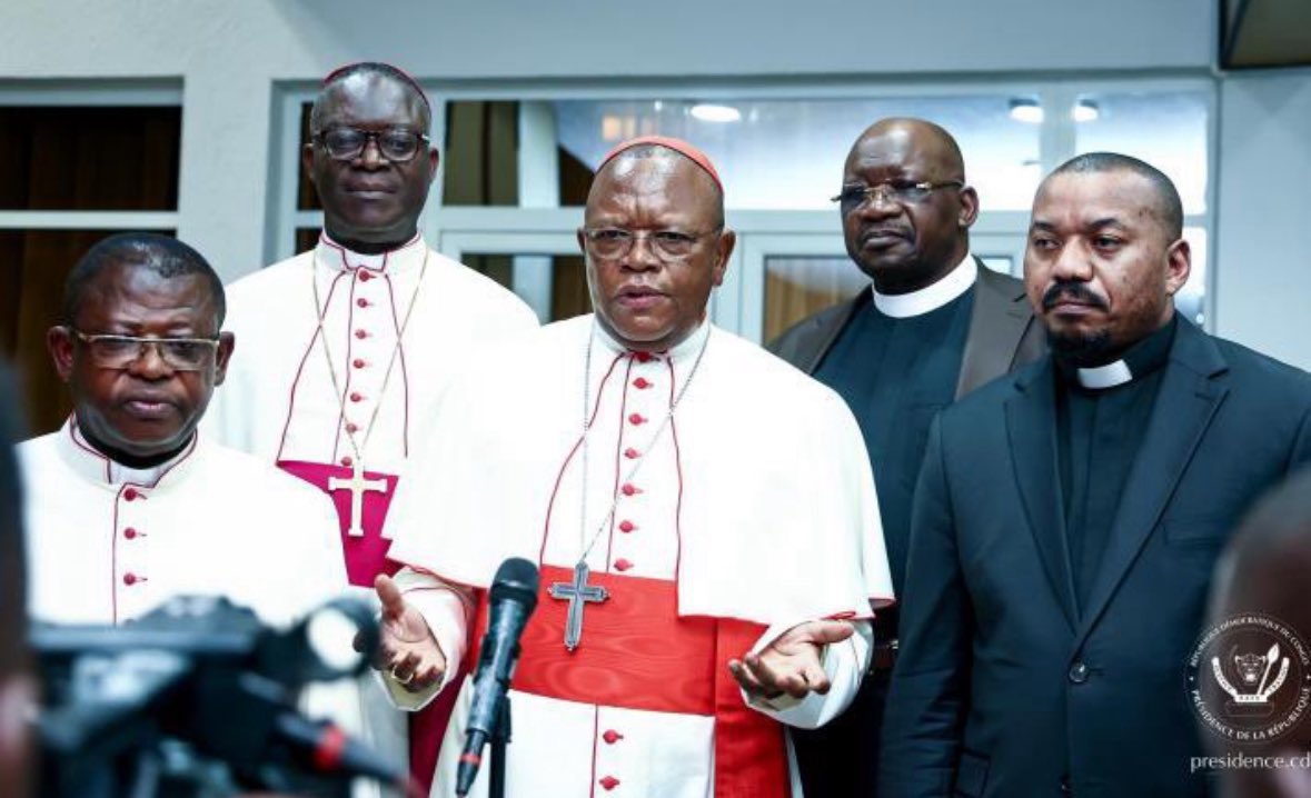 Des membres de la CENCO (Conférence Épiscopale Nationale du Congo), lors d’une déclaration à la presse à Kinshasa, sur fond de tensions croissantes avec certains acteurs politiques au sujet de leur implication dans la vie politique nationale.