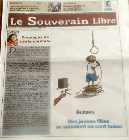 Dans son éditorial du nouveau numéro, le journal le Souverain Libre, paraissant à Bukavu, montre que des jeunes filles de Bukavu reviennent à l’école, à la maison, se retirent, et sont retrouvées pendues au bout d’une corde dans les chambres à coucher, douches ou chantiers.