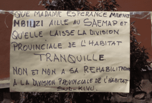 « Nous manifestons contre madame Mbilizi Espérance. Nous voudrions qu’elle puisse rester là où elle est matriculée. Nous ne l’avons pas ici comme agent. Nous ne voulons pas qu’elle puisse rentrer ici à la division provinciale de l’habitat. Nous demandons à l’autorité de nous rétablir dans nos droits. Qu’elle puisse annuler cette fausse lettre venant de Kinshasa parce que, c’est nous qui connaissons le problème d’ici. Si cela n’est pas fait, nous allons nous soulever et l’Etat ne saura même pas nous maitriser parce que ça c’est une moquerie face à la division provinciale de l’habitat et encore elle veut nous provoquer. Nous voulons entre dans notre état de droit », renseignent ces manifestant.